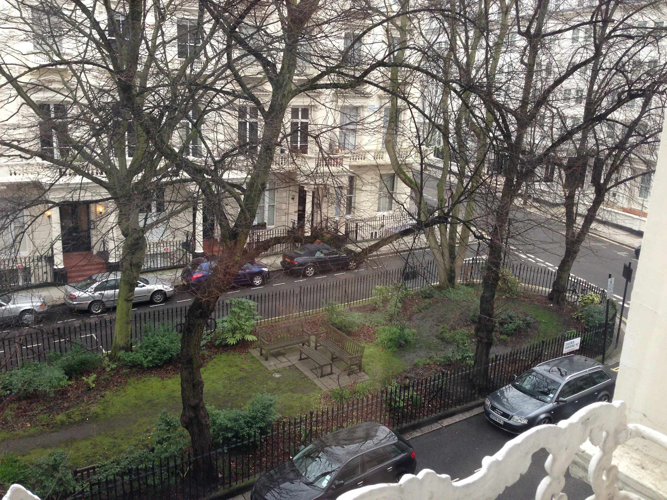 Zur Straßenseite, aber auf einen kleinen Park