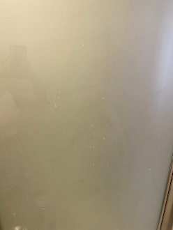 Bad Tür voller Flecken und verschmutzt