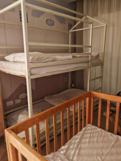 Hochbett, und daneben Babybett. Top !