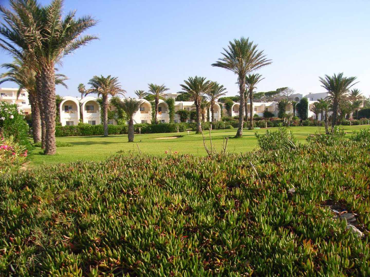 Bungalows, im Vordergrund der Golfplatz