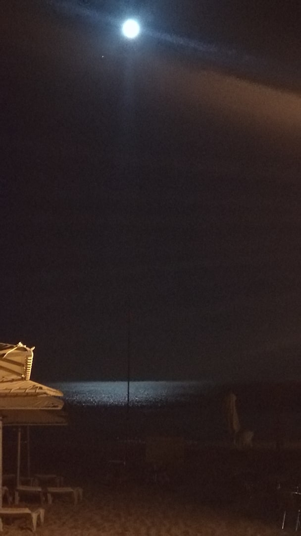 Strand bei Mondschein. Leider mit Sonnenschirm.