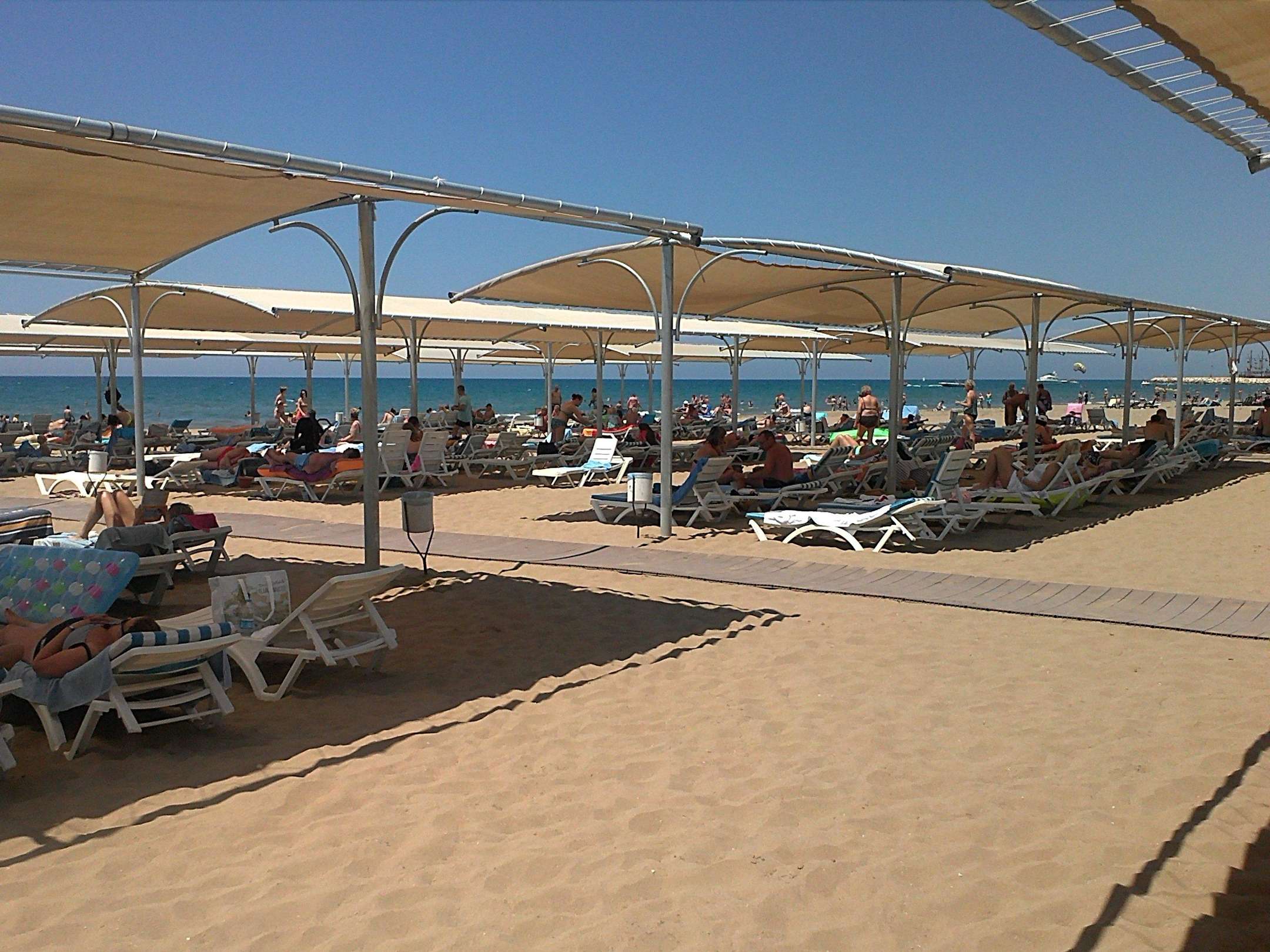 Strandanlage Hane Garden, nicht auf dem Bild ist rechts eine große überdachte Bar mit kostenlosen Getränken Wasser, Limo, Wein und Bier, sowie Mittagessen (man bekommt dieses auch hier, Hotel ca. 250Meter Entfernung)