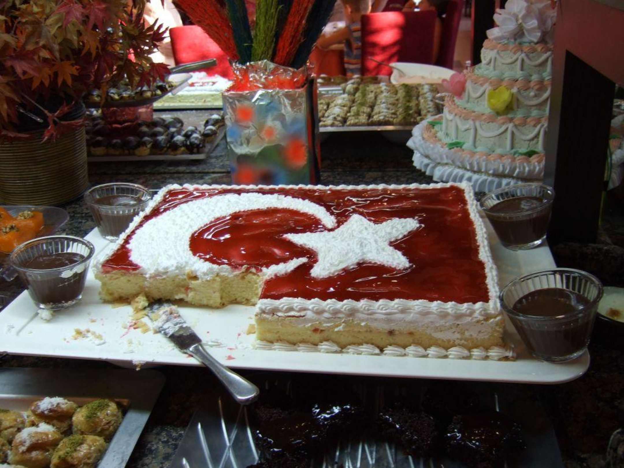Dessert beim Türkei - DeutschlandspielDessert beim Türkei - Deutschlandspiel am Türkischen Abend im Restaurant.