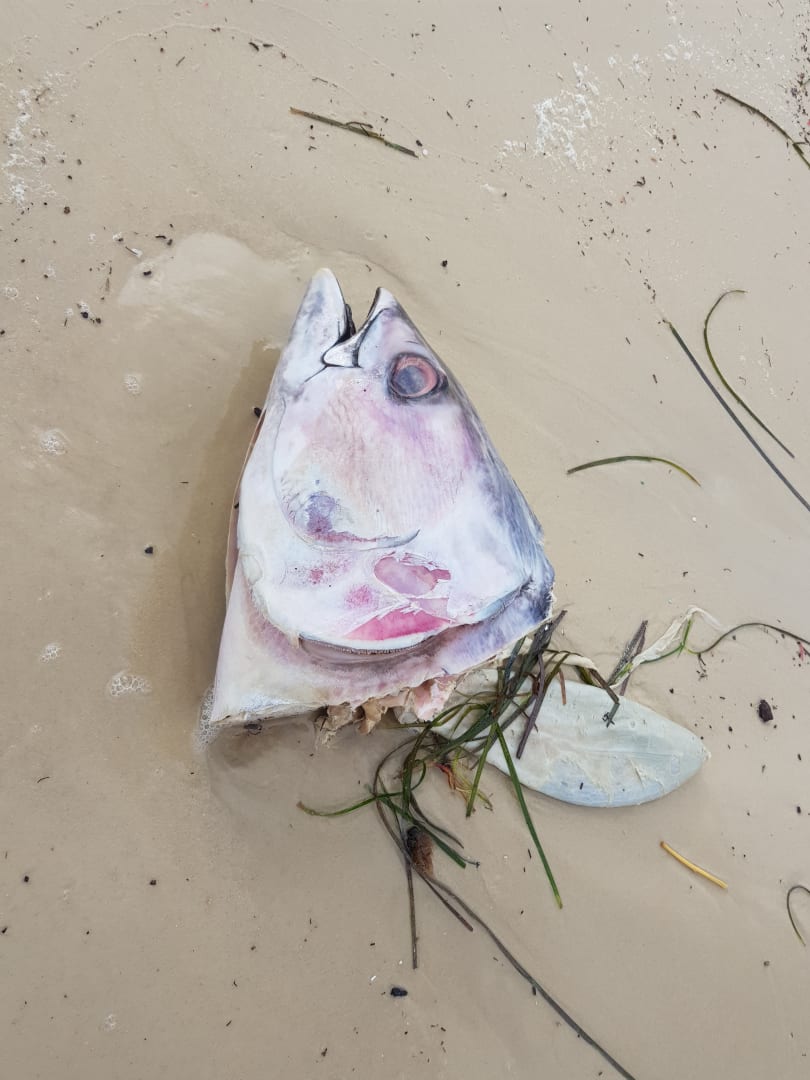 abgetrennter Fischkopf von der Größe eines kleinen motors