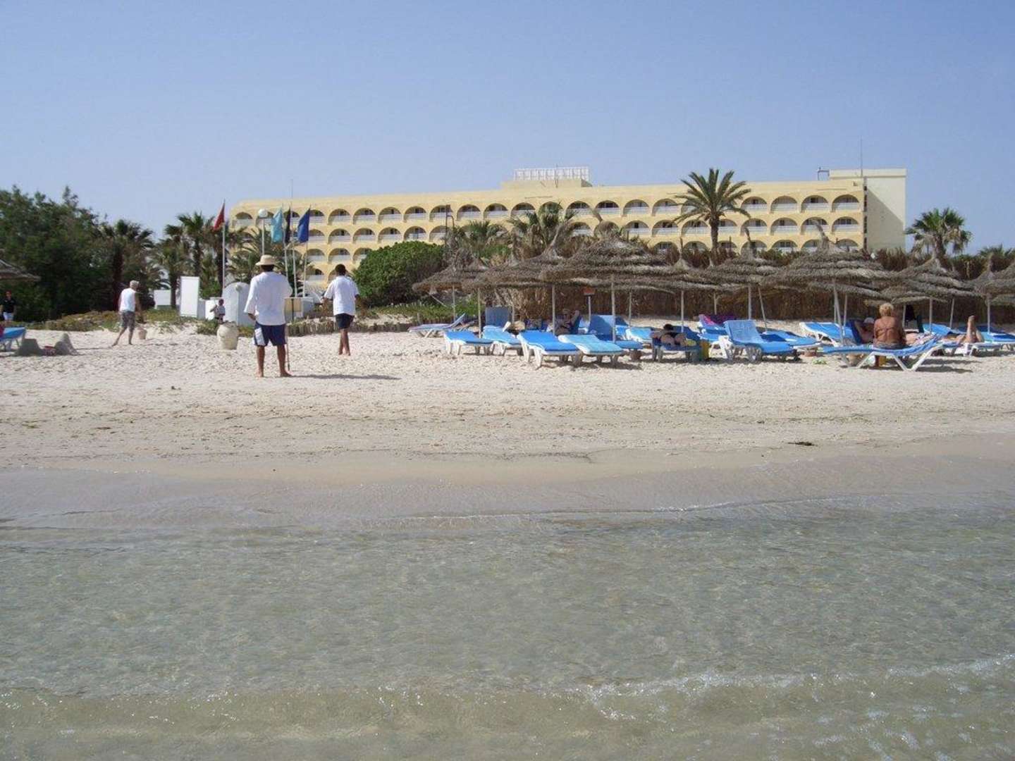Das Hotel liegt direkt am Strand, der feinen Sand und klares Wasser bietet.