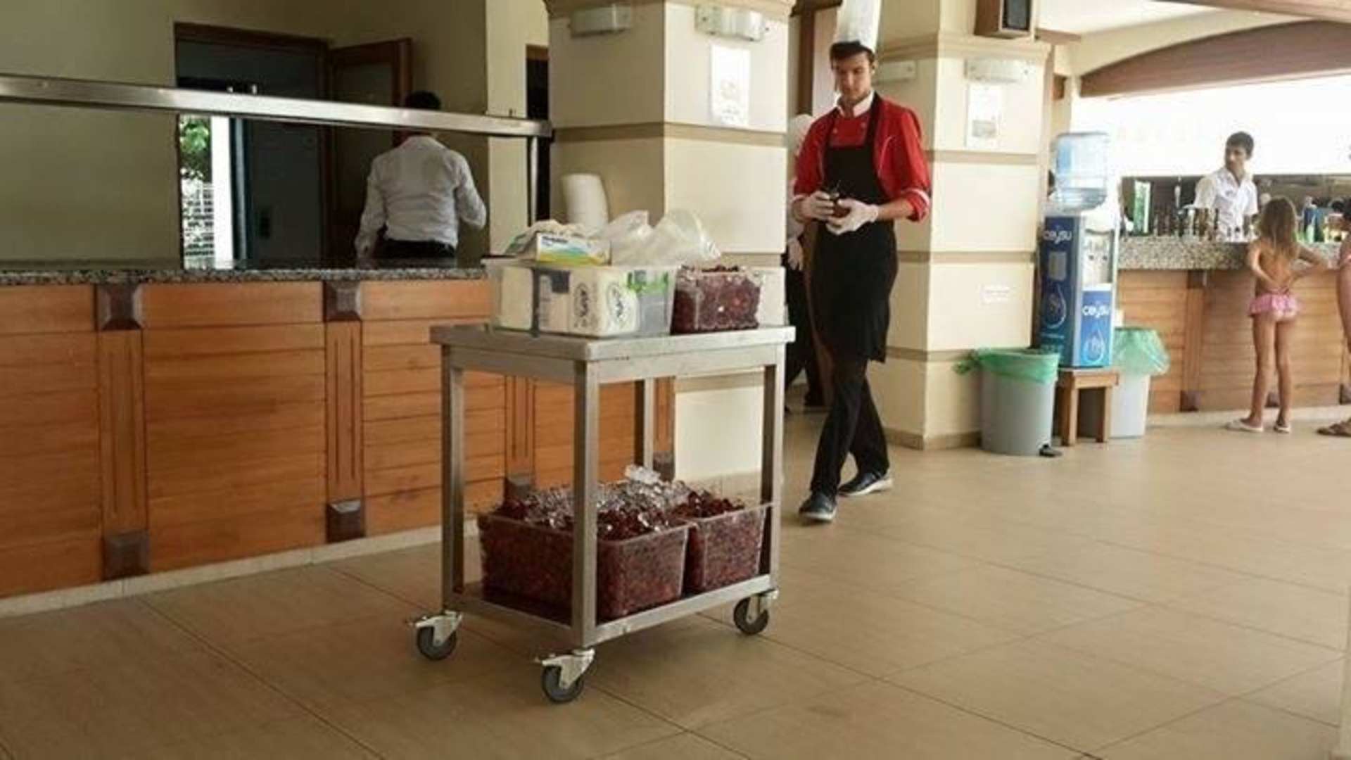 Obst wird am Pool verteilt