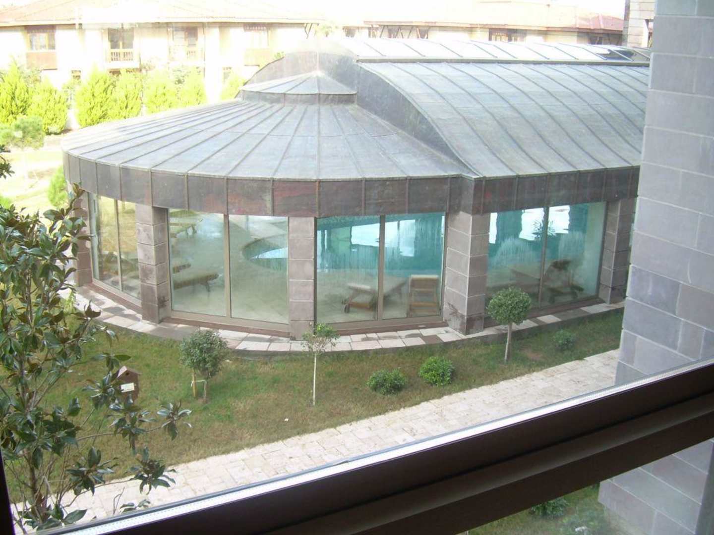 Blick auf das Hallenbad von der Lobby aus