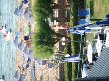 unter den 2 Bäumen sind die zwei Duschen fürs Meer