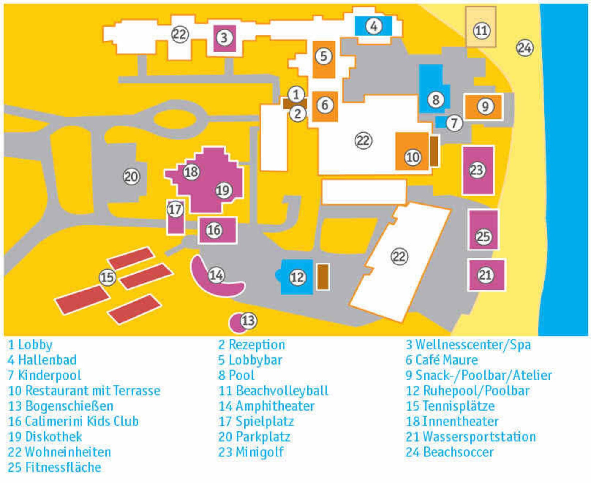 Vom untersten Gebäudetrakt (22) hat man selbst in der untersten Etage einen herrlichen Meerblick…