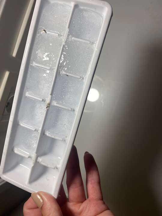 Verschimmelte Eiswürfel aus dem Kühlschrank, die fast mein Kind in ihrem Glas getrunken hätte.