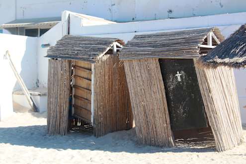 Strand"windige" Umkleidekabinen am Strand