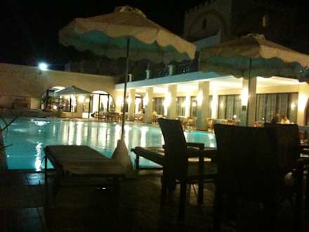 Pool bei Nacht und Terrasse vom Restaurant