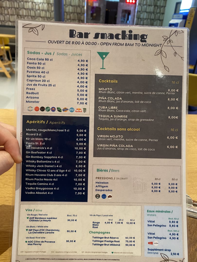 Snackkarte an der Bar