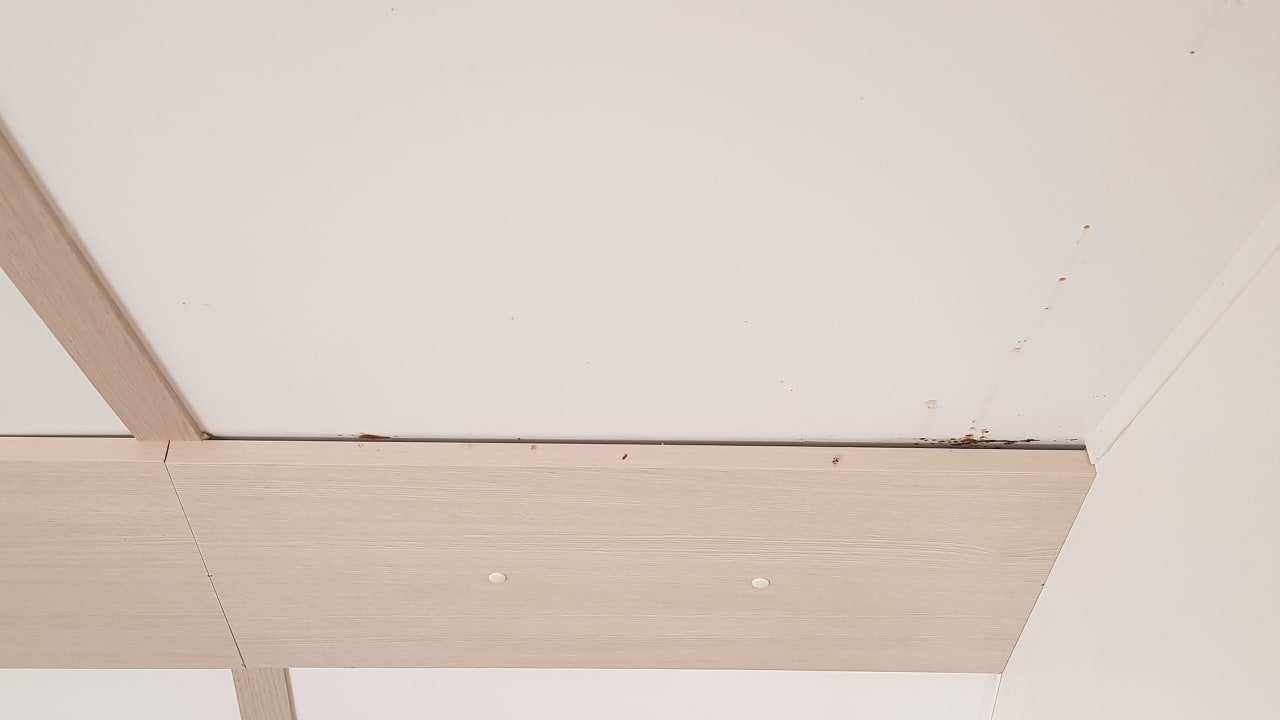 hinterm Deckenpaneel sieht's nach Schimmel aus