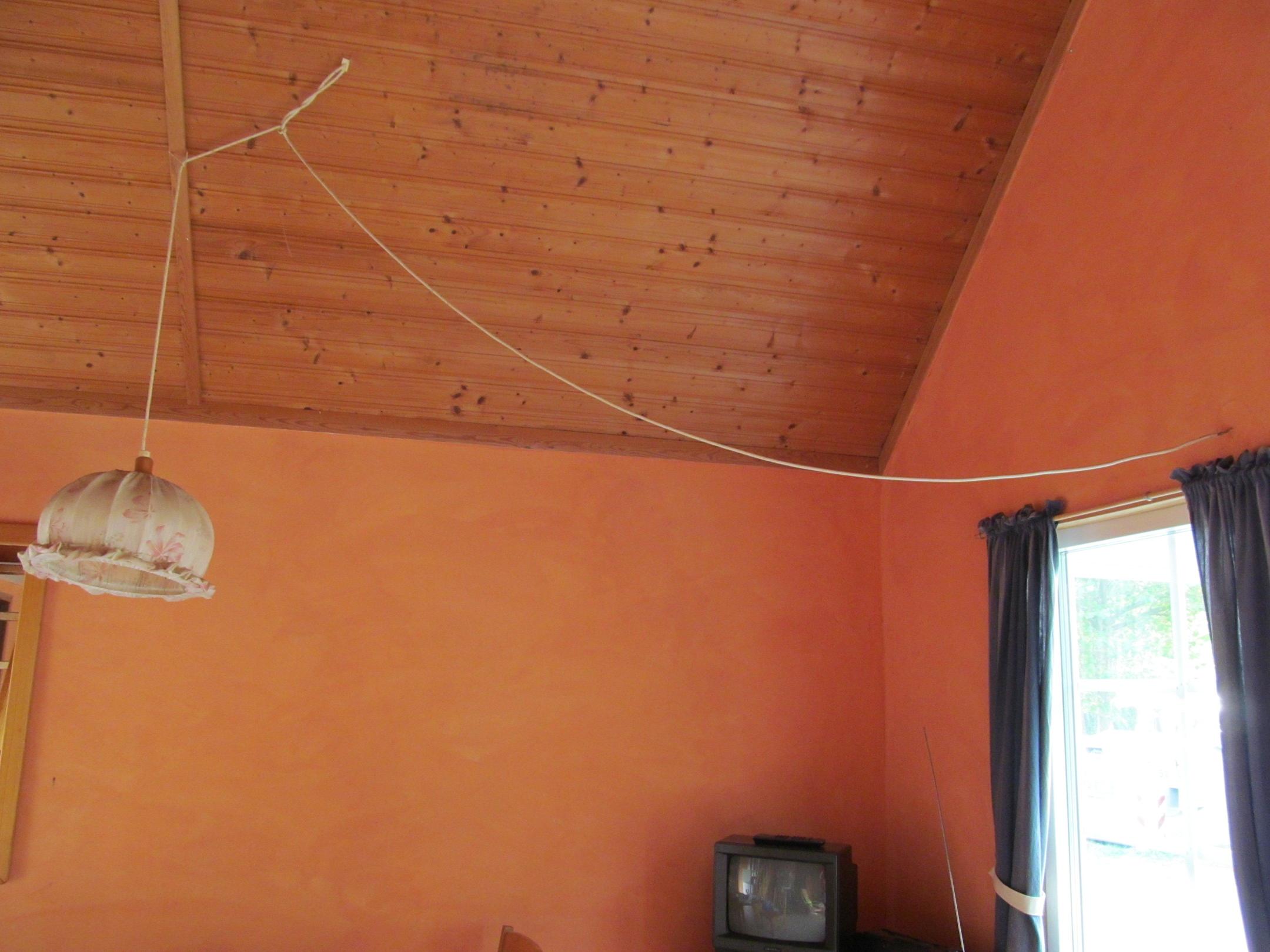 Mit Kabelbindern an Deckenkonstruktion angetürkt