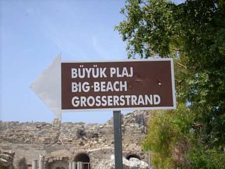 Zum Dolphinbeach oder "grosser Strand"gegenüber dem can Garden immer geradeaus durch antike Funde (ca. 10 min. Fussweg)