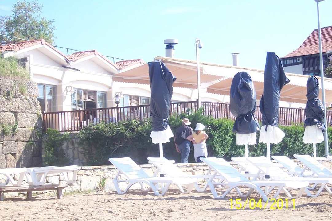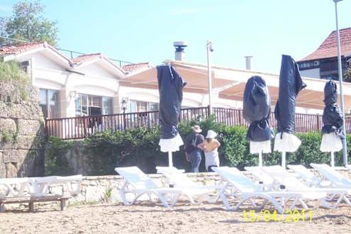 Blick vom Strand zum Restaurant
