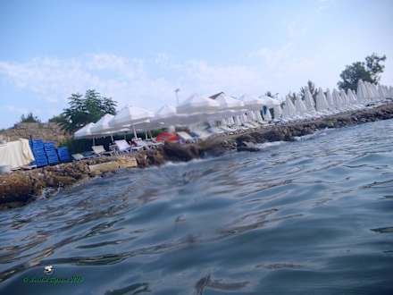 Blick von der Luftmatratze auf den hoteleigenen Sandstrand