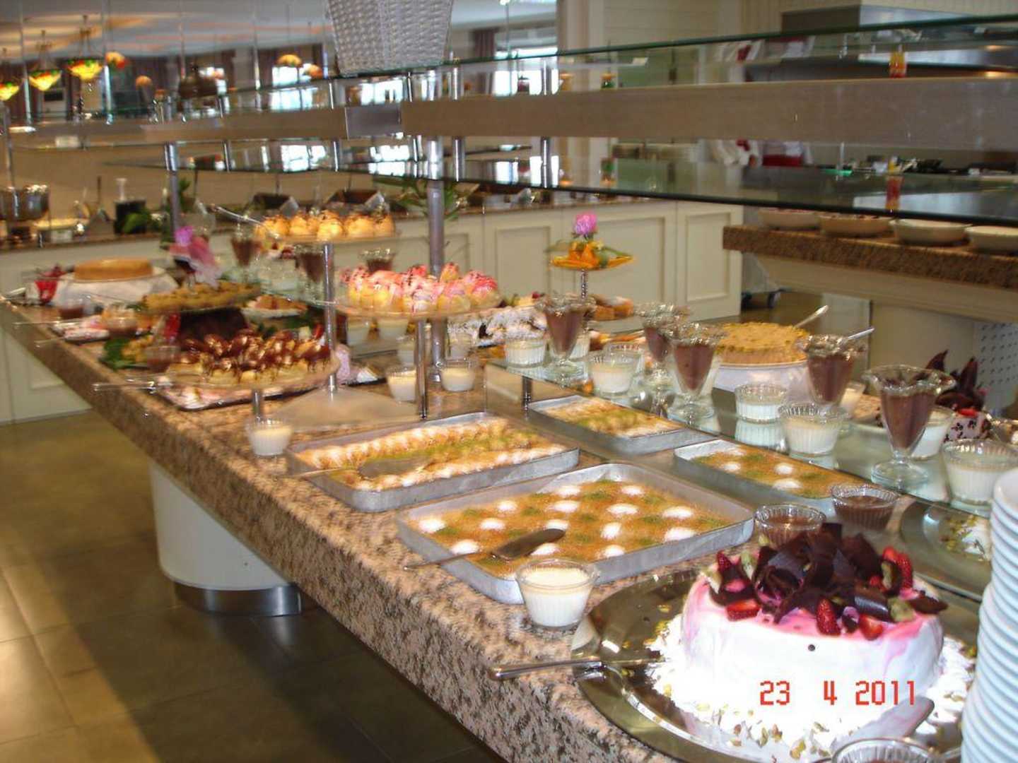 So sieht das Buffet im Restaurant mittags und abends aus (teuflischer Süßkram)