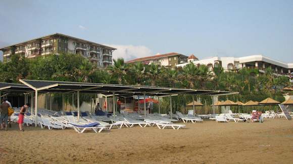 und flach abfallendes Wasser hat man am hoteleigenen Strand (auch sehr sauber!), an dem man tagsüber auch mit Speisen und Getränken versorgt wird. Vorher muß man jedoch ein paar Stufen hinunterlaufen.
