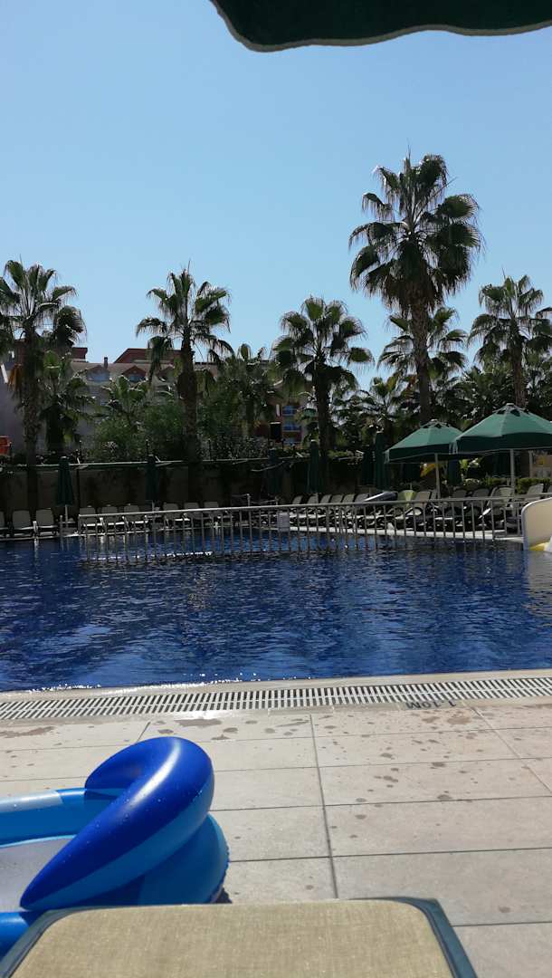 Das ist der Spaß Pool, mit Rutschen für Kinder und zum Wasserball spielen