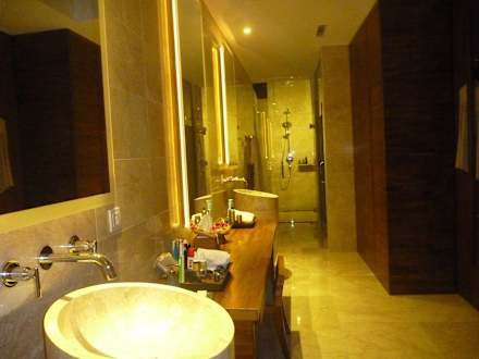 Das Bad in der Pool-Villa ist auch Abends durch die indirekte Beleuchtung ein Traum.
