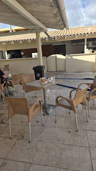 Nicht aufgeräumte Tische an der ollen Strandbar