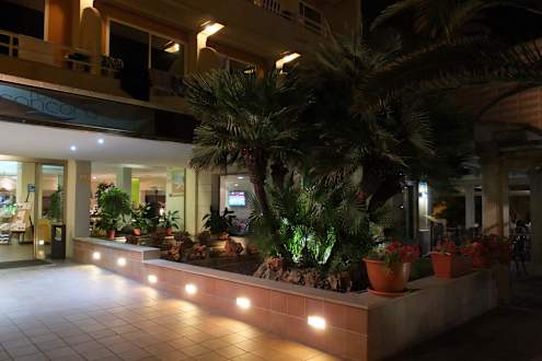 Grünanlage am Eingang am Abend