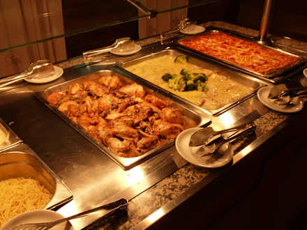 Standardbüffet,gutob fertige Gerichte, wie Hähnchen, oder Gratins, es schmeckte.