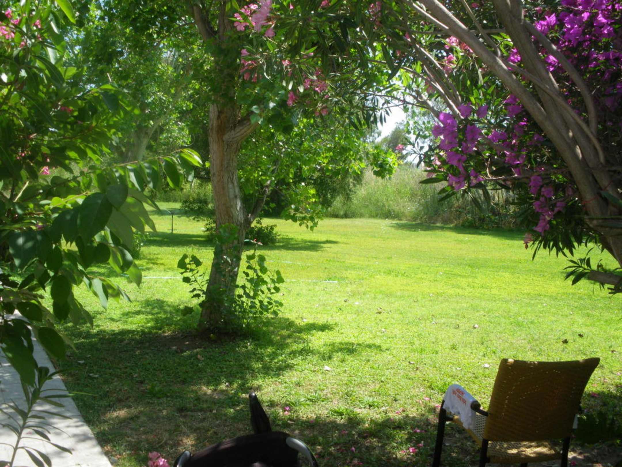 Ausblick von unserer Terrasse in den Garten
