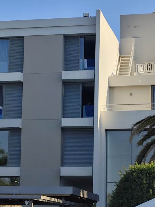 Zimmerfenster mit Blick auf Pool und Meer