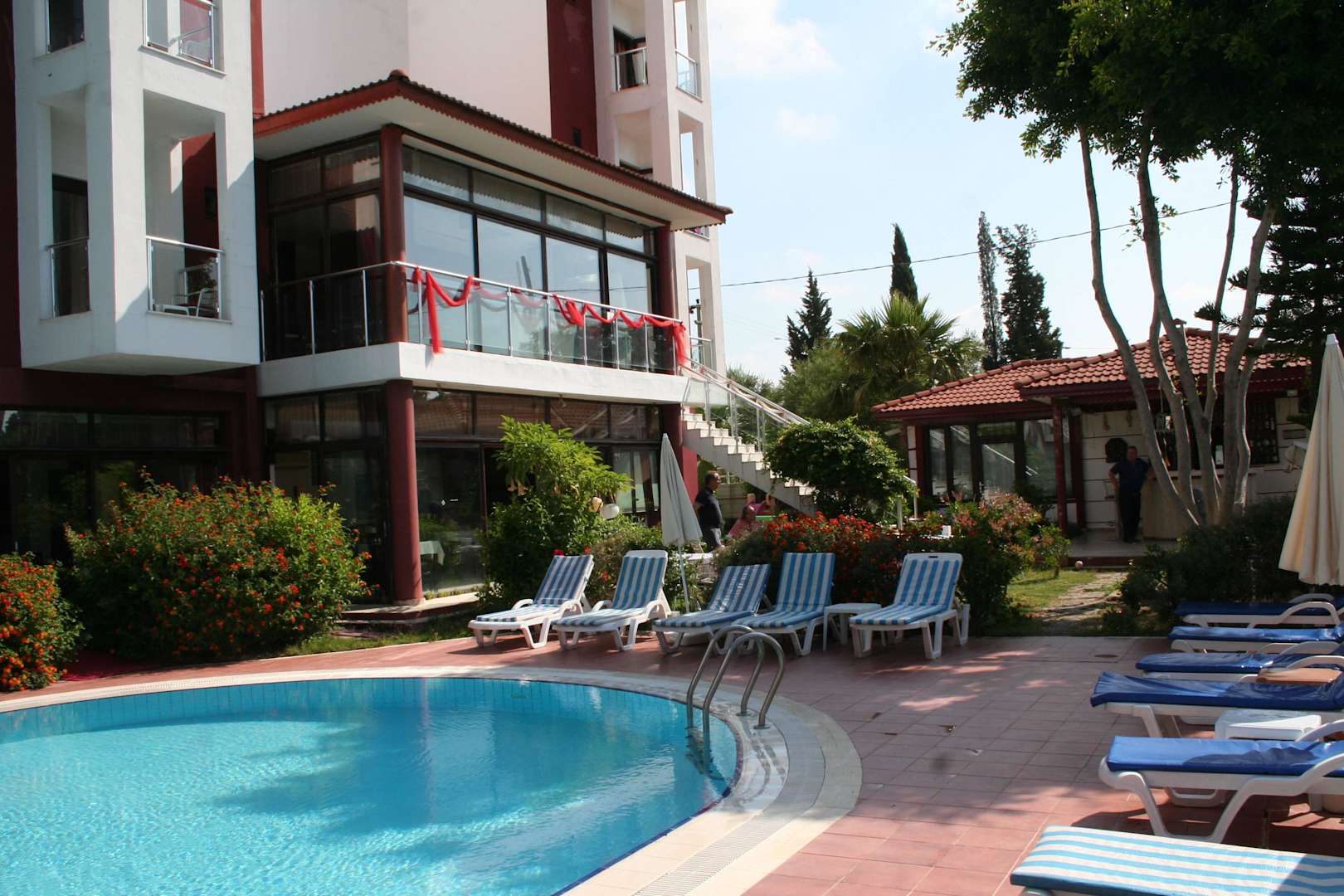 Der Pool im Hintergrund die Bar
