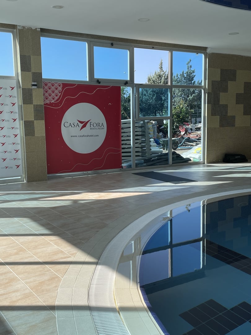 Indoorpool mit Blick nach außen