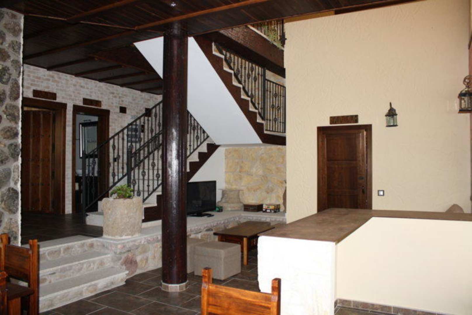 Salon im unteren Bereich mit Treppenaufgang und TV-Sitzecke