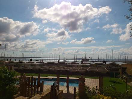 Blick über den Hafen, die Masten der Segler über das Meer.