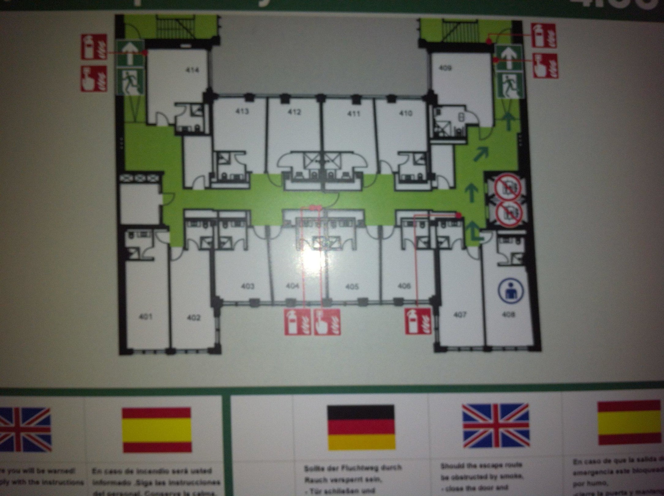 Auf dem Fluchtplan ist es das Zimmer 408. Vermutlich ist so ein Fluchtplan nicht maßstabsgetreu, sonst weiss ich nicht wie man die anderen Zimmer, bei einem Größenverleich als "sehr geräumig" bezeichnen kann