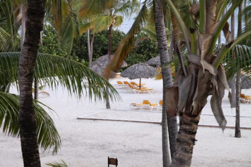 Widok z pokoju na morze (za palmami)