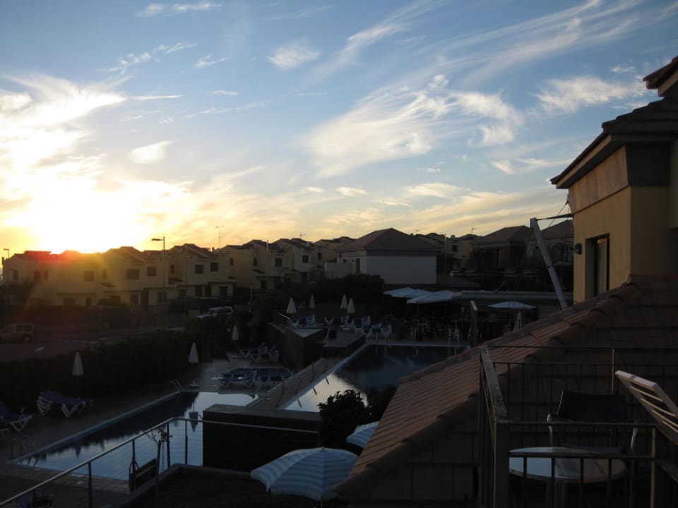 Rechtsseitiger Blick vom Balkon über die Anlage