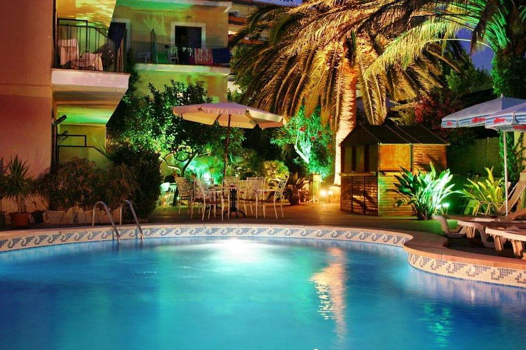 Celo-Hostal am Pool, abends,