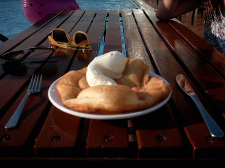 Frttierter Teigfladen mit Eis