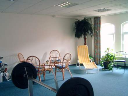 FitnessbereichSitzgelegenheit im Fitnessraum zum Ausspannen und Warten. Center Hotel "Alte Spinnerei", Burgstädt in Sachsen.