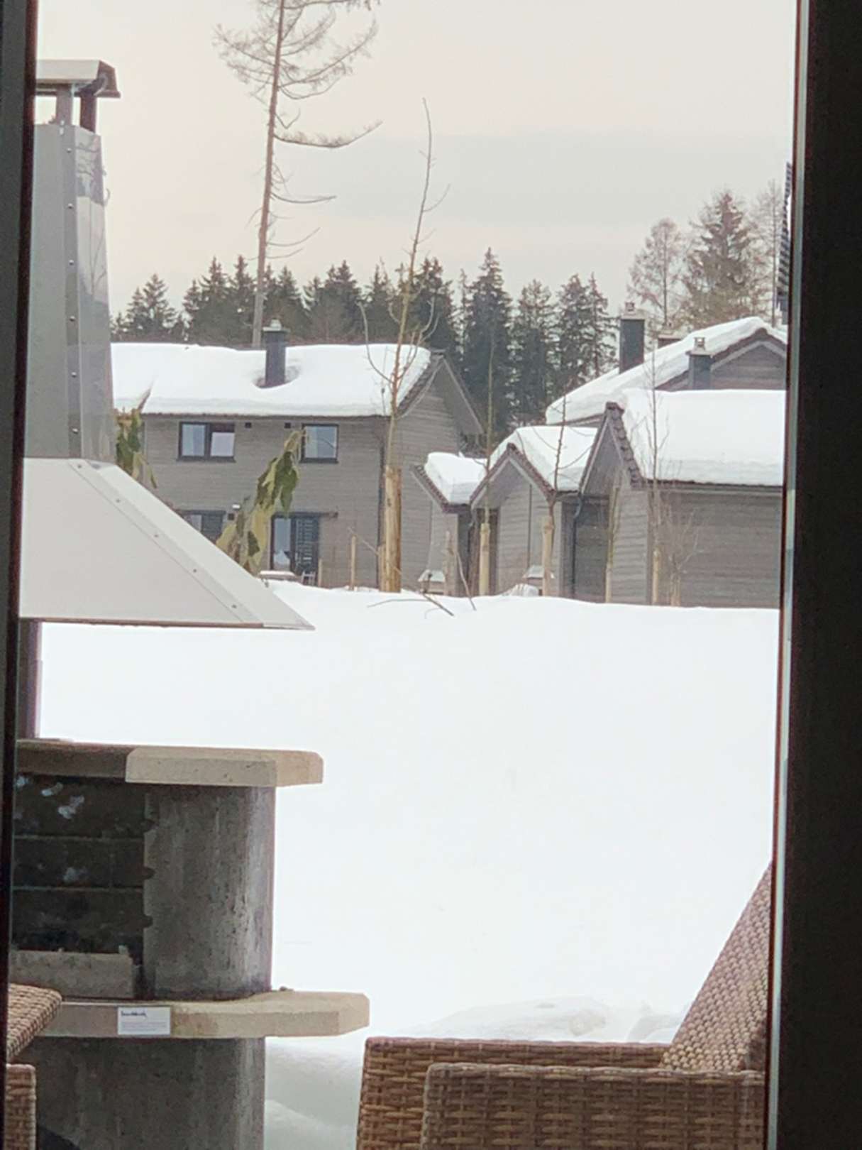 Terrasse mit Grill und viel Schnee