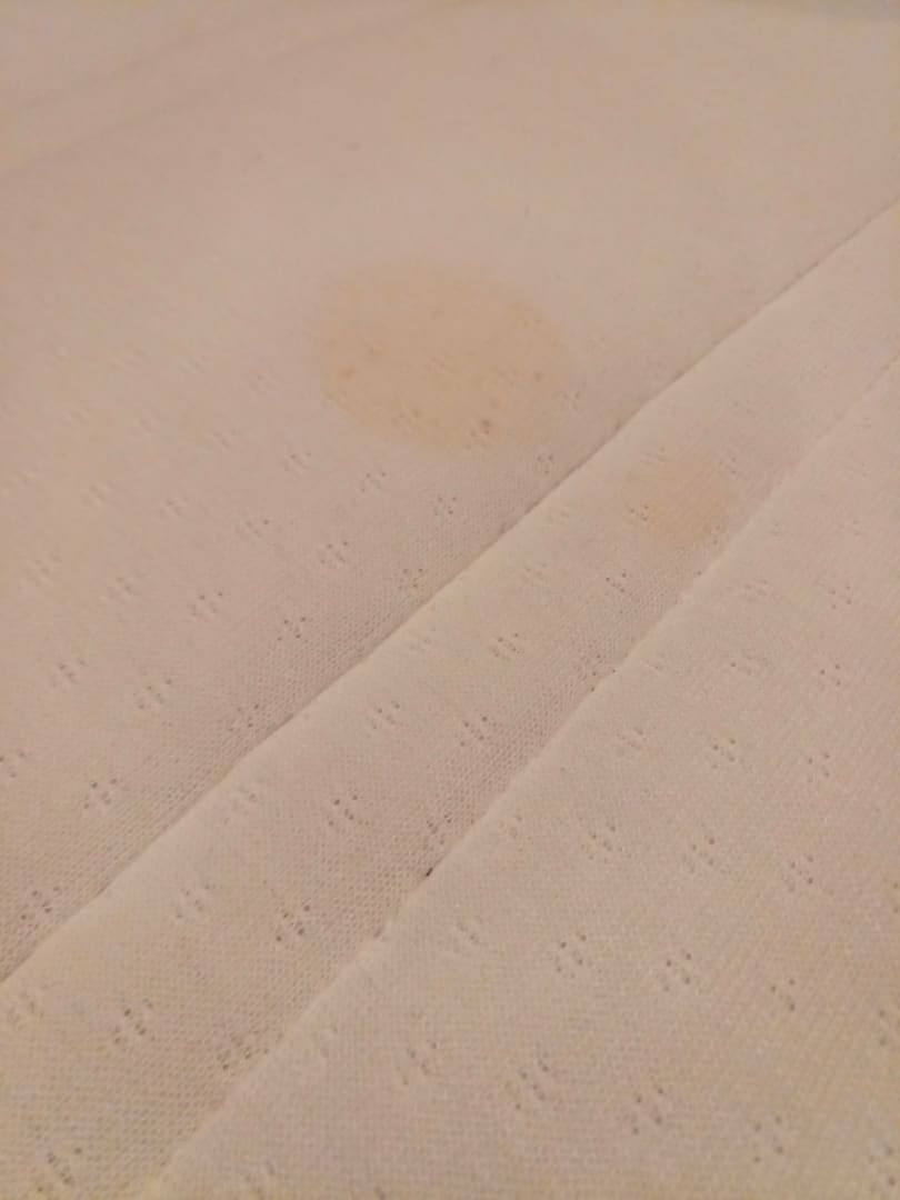 Ekliger Fleck auf dem Topper, direkt unter dem Bettlaken.