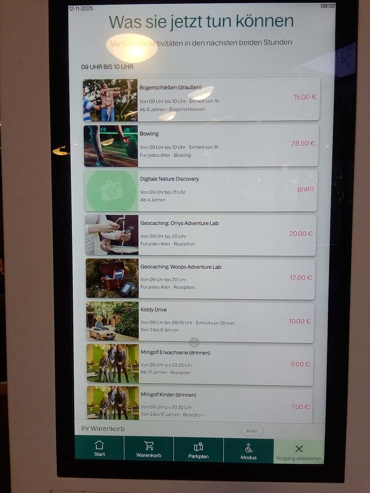 Infotafel mit tollen Tages-Aktivitätsangebototen