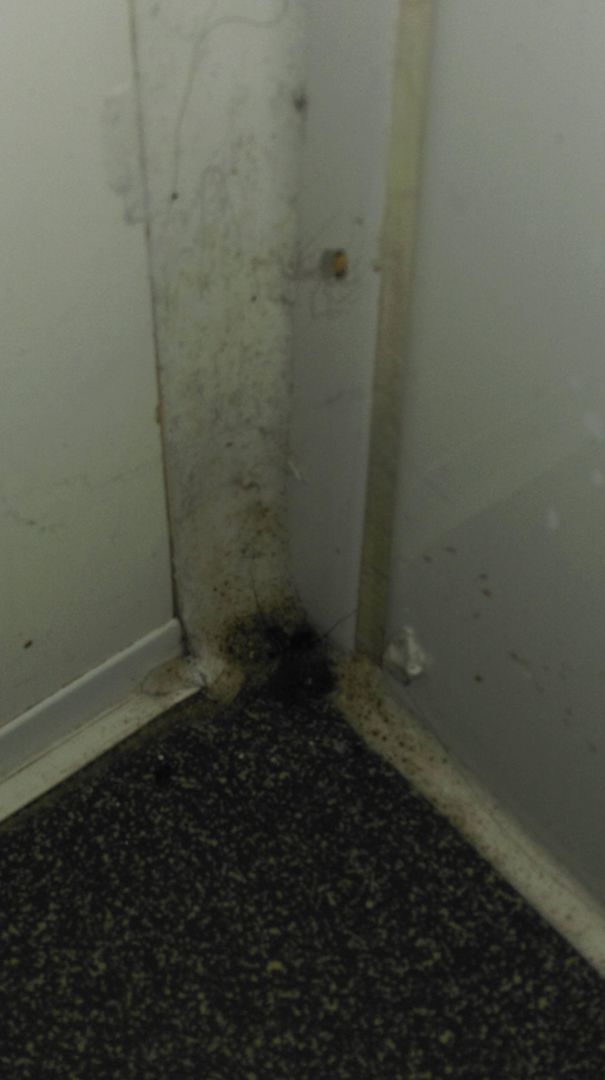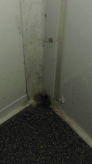 Badezimmer unterer Teil der Wand / Ecke zum Schrank, Dreck und schimmel