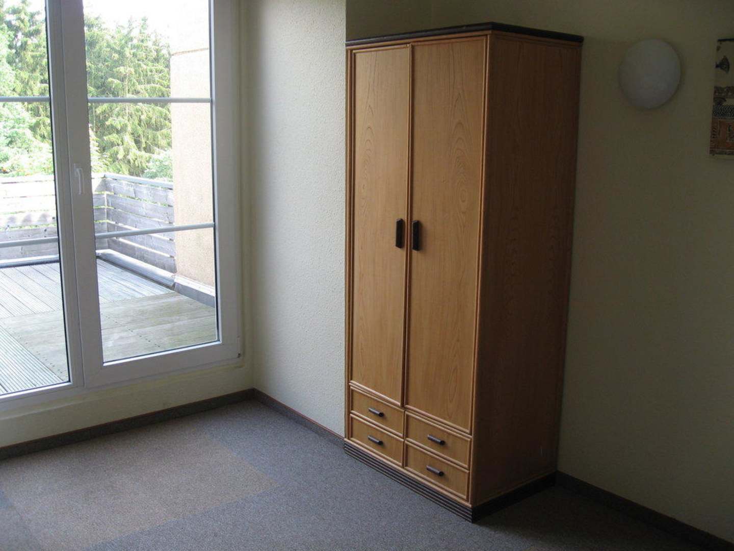 Dies ist der einzige Kleiderschrank im Schlafzimmer. Sehr wenig Platz um für 14 Tage Kleidung unterzubringen. Keine sonstige Ablagemöglichkeit wie Sideboard oder ähnliches