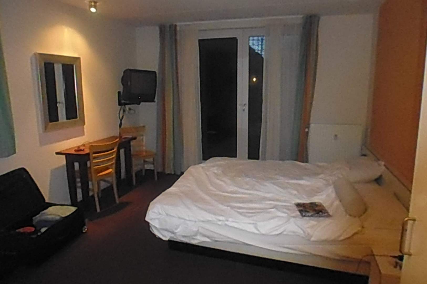 SchlafzimmerSchlafzimmer. Die größe war sehr schön, eine kleine Terasse draußen, aber die Betten sind katastrophal, leider.