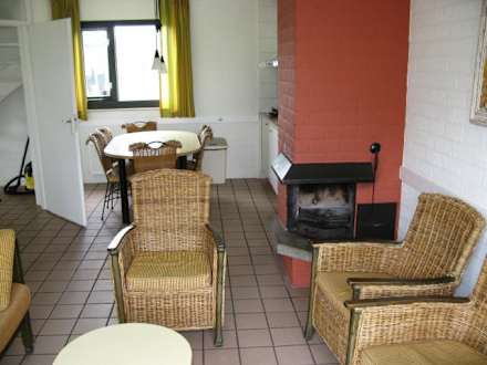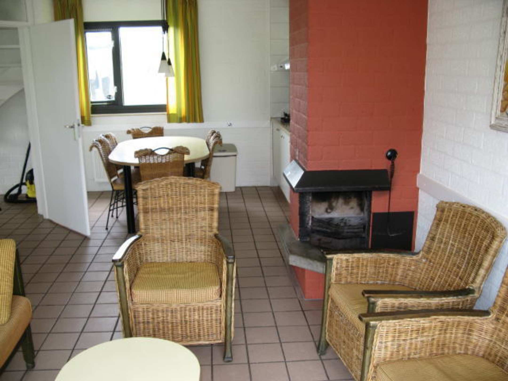 Blick vom Wohnzimmer in Essbereich und KücheDie Korbmöbel sind schon etwas älter und die Holzteile da und dort etwas abgestoßen, aber noch o.k.