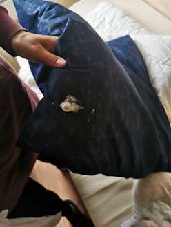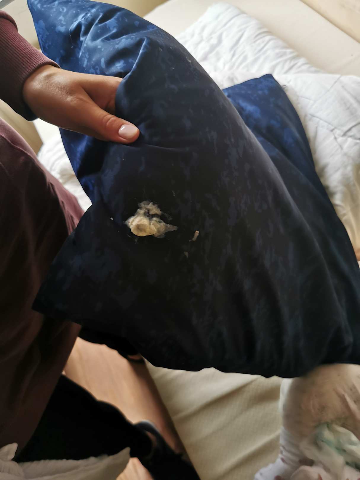 Kaugummi auf dem Kopfkissen