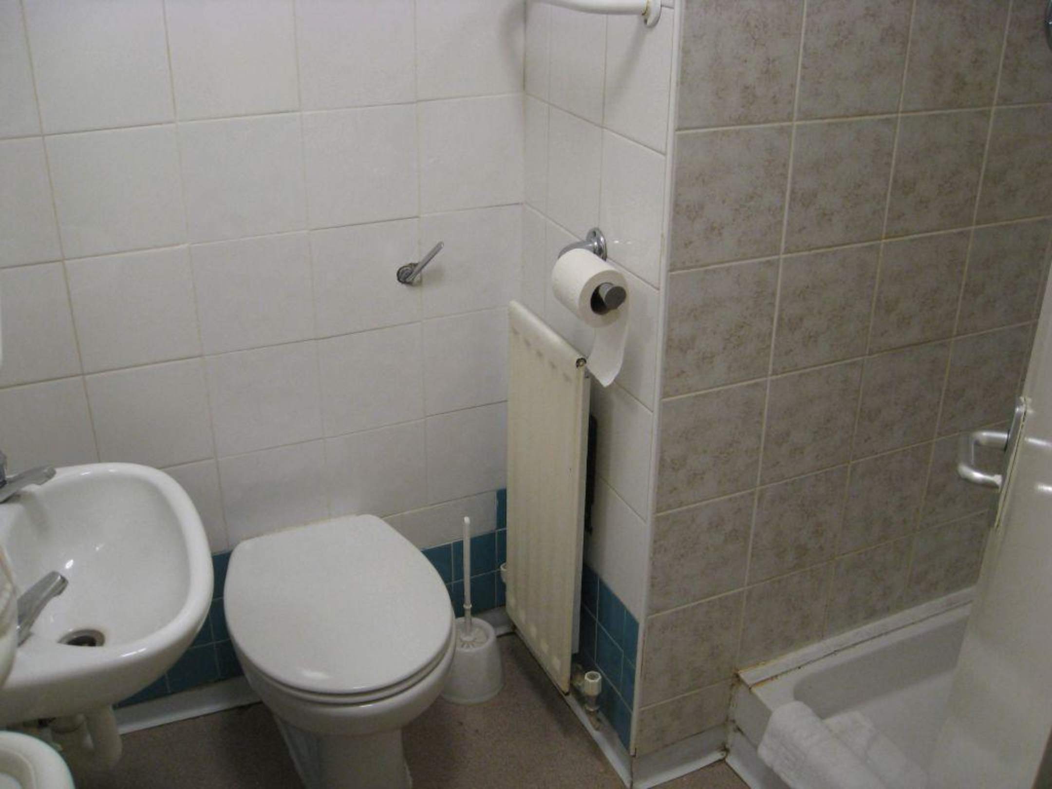 Central Park Hotel Finsbury Park- das Badezimmer! Mini Waschbecken und Dusche.